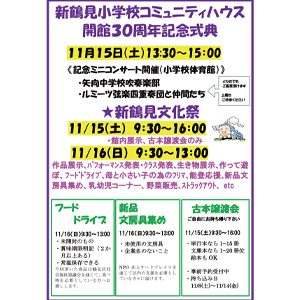 | 日 時 | 11月15日(土曜日)午前9時30分から午後4時 11月16日(日曜日)午前9時30分から午後1時 |