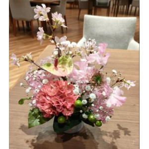 春の花材で楽しくフラワーアレンジメントをしましょう。