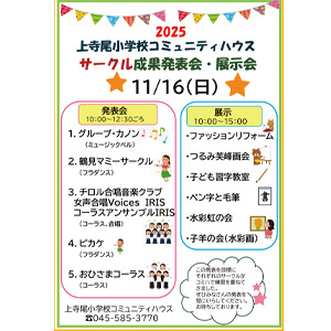 | その他 | 発表は午前10時から12時の予定。展示は午前10時から午後3時。 チラシ(PDF) |