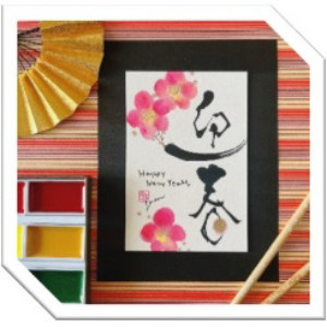 花咲く書道で年賀状
